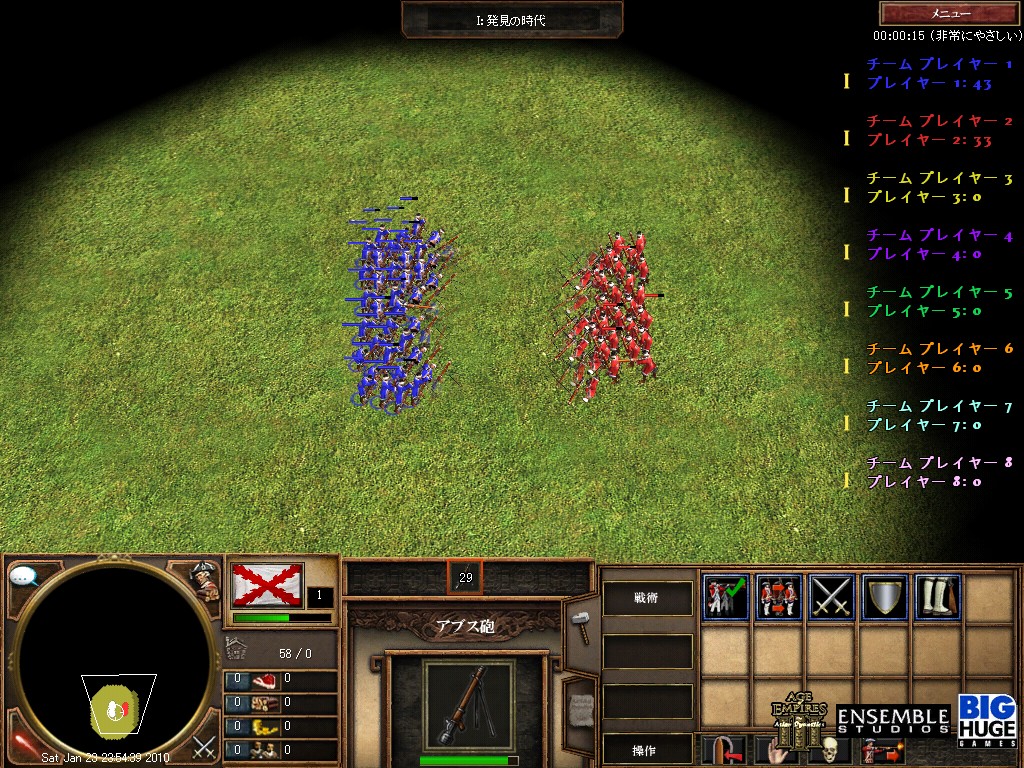 開幕から凄い勢いで両軍とも兵が削られていきます。わずか15秒でこのありさま。