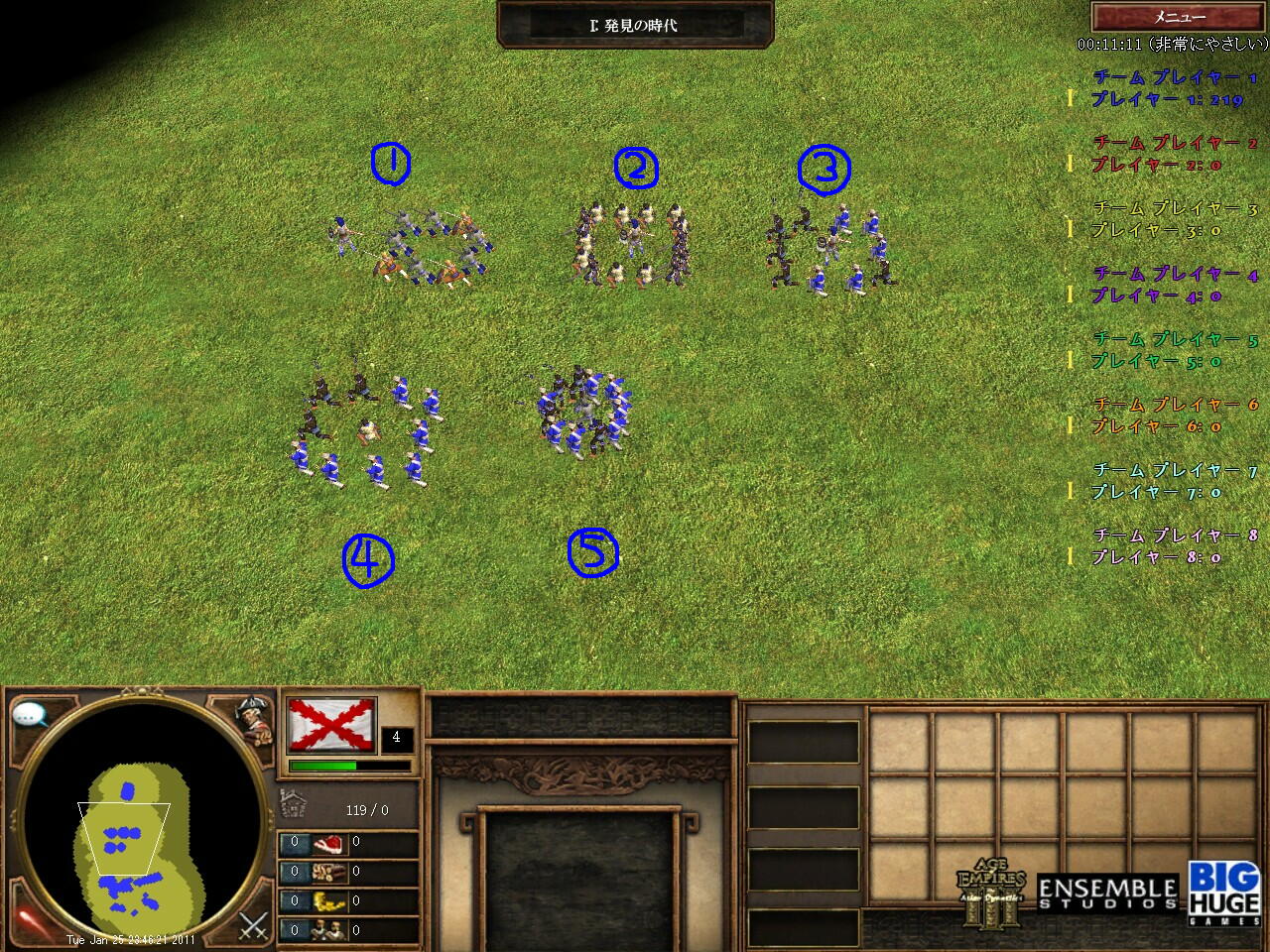 2はイーグルと遠隔歩兵です。この2つを混ぜた場合はイーグルが内側になるようですが、両方遠隔兵なのであまり使い道はなさそうです。